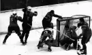 Saison 1983/84 - Otto Lendemann (ein Bündner) war wohl jedem Zuschauer dazumal ein Begriff. "Die gute Seele" des EHC Visp, der immer spätestens im letzten Drittel mit seiner Sonja auf der Spielerbank erschien.