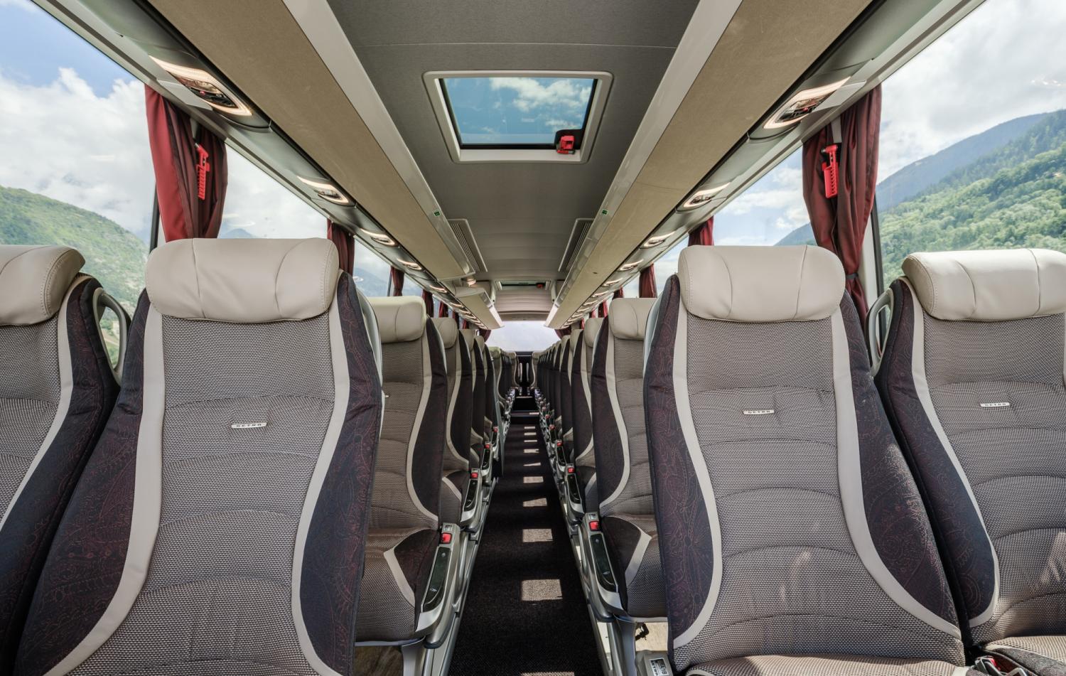 Cette nouvelle génération d'autocars pose des jalons : des sièges confort ergonomiques, un éclairage d'ambiance, des filtres de climatisation antiviraux, le tout dernier système d'infodivertissement ainsi que des éléments de service réglables individuellement créent une expérience de conduite du plus haut niveau. Dans le domaine de la sécurité, le bus convainc également par sa technologie de pointe : l'assistance au freinage d'urgence avec détection des personnes, la caméra 360°, MirrorCam et la conduite semi-automatisée grâce à Active Drive Assist 2 garantissent une sécurité maximale à chaque trajet. Le régulateur de vitesse intelligent permet de voyager en respectant l'environnement.
